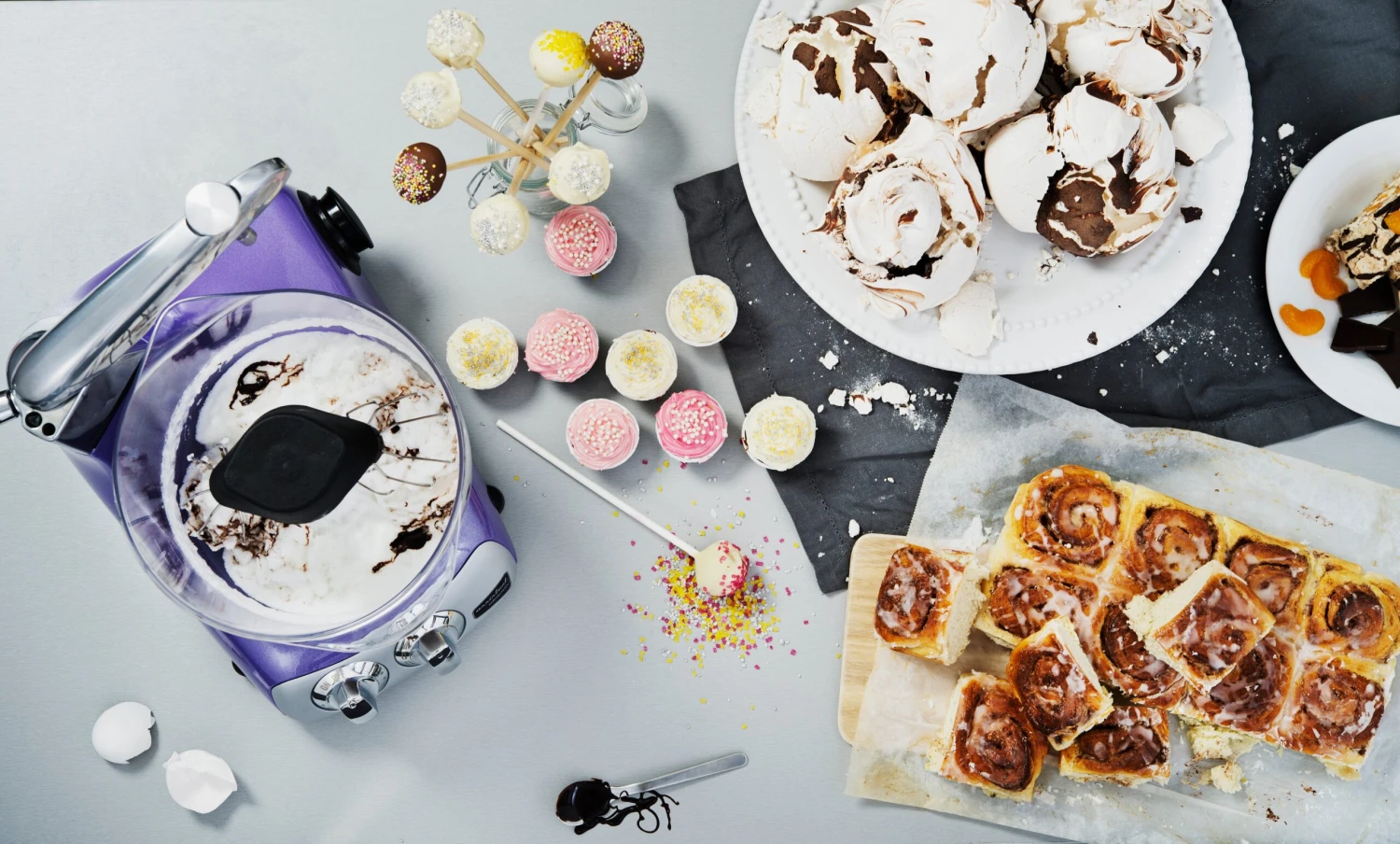 - Large plastic beater bowl whisks meringue, creams butter and icing and holds up to 18 egg whites.
