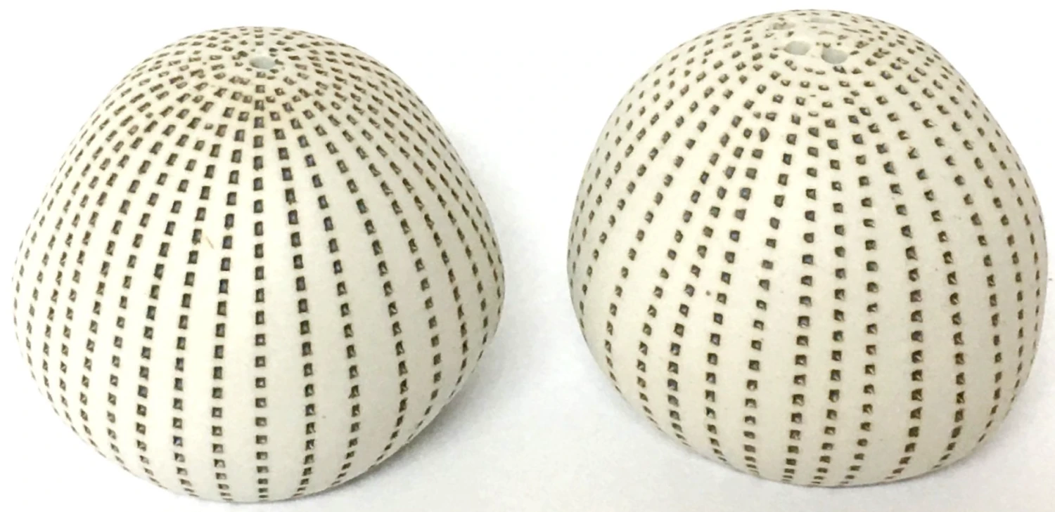 High-quality porcelain ceramic salt and pepper shakers, handcrafted, watertight, hand wash and air dry.