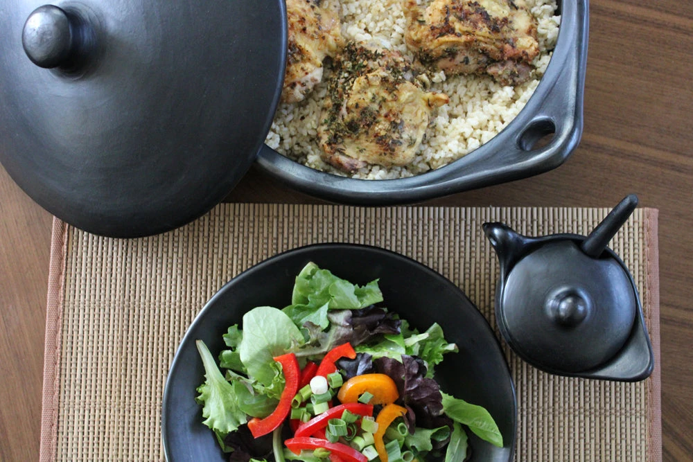 About Chamba:Timeless Chamba cookware is handmade in Colombia from clay that contains mica which allows it to withstand heat. All-natural and unglazed, it contains no toxins. Chamba can be used in the oven and microwave – even on the stovetop and grill! It cleans up easily and should not be put in the dishwasher.More about La Chamba