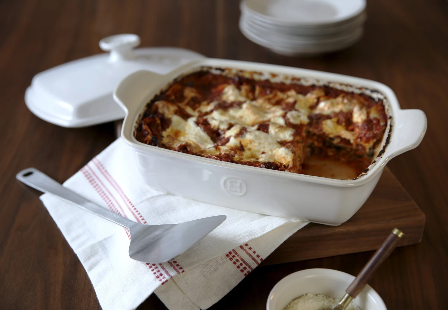 Emile Henry all-natural ceramic is extremely durable, and a versatile choice for one-dish baking, serving and storing. The baker is shaped from Burgundian clay, which absorbs, distributes and retains heat evenly so contents cook and brown to perfection. All Emile Henry products are made in France and come with a ten year warranty.