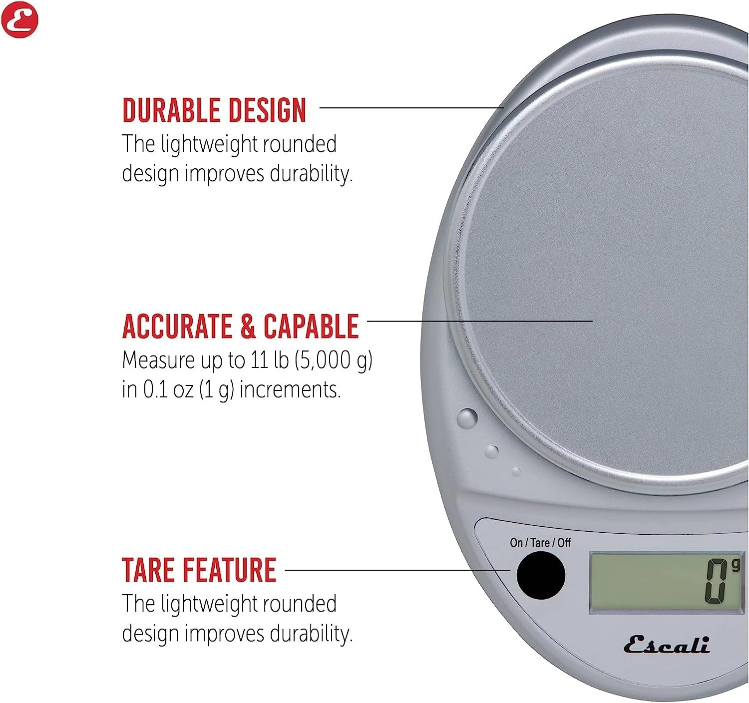 Twice rated as a best value by a leading independent consumer magazine; the Escali Primo Digital Kitchen Scales are multifunctional and feature an easy to use two-button operation. The sealed control panel and rounded design make the scale easy to keep clean and very durable. Available in a selection of colors.