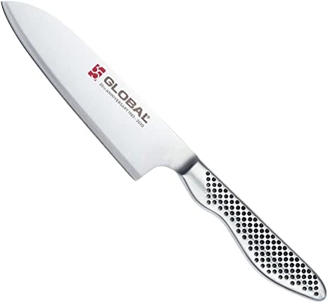 Commemorate GLOBAL’s 35th Anniversary with a limited edition 5″ Santoku knife that’s great for cutting, chopping and mincing vegetables. This knife has a straighter edge vs. the curve of a chef’s knife, and has a blunted sheepsfoot-tip blade with a thinner spine. It can easily slice thin-boned and boneless meats, fish and vegetables.