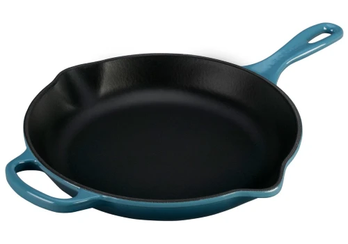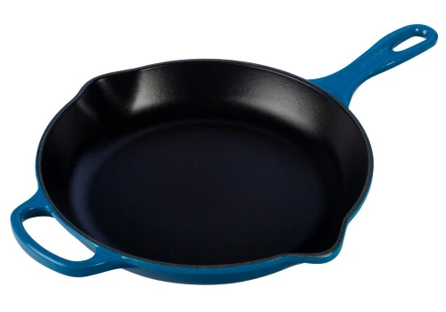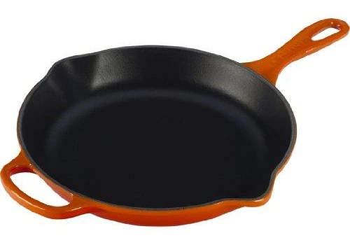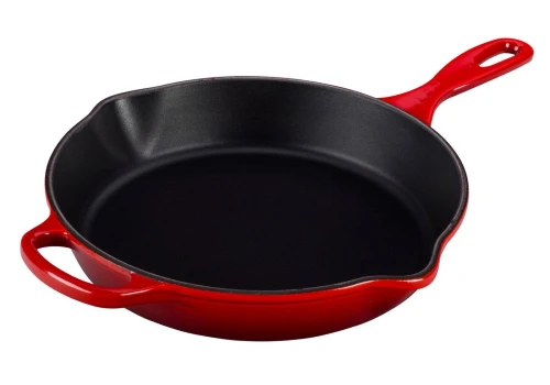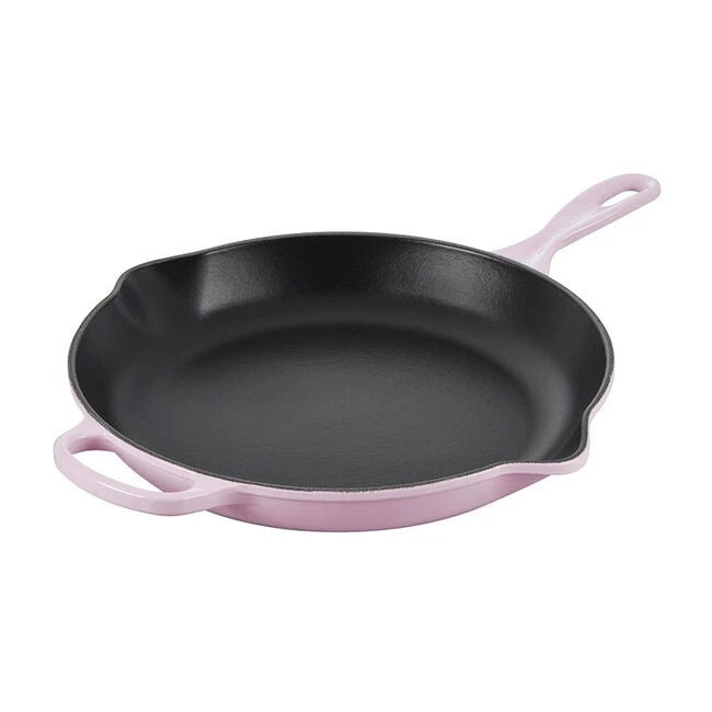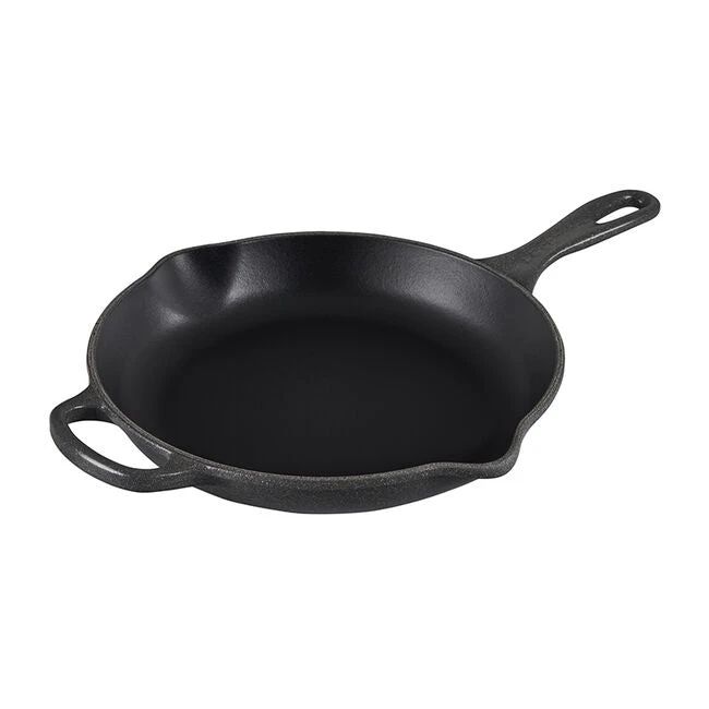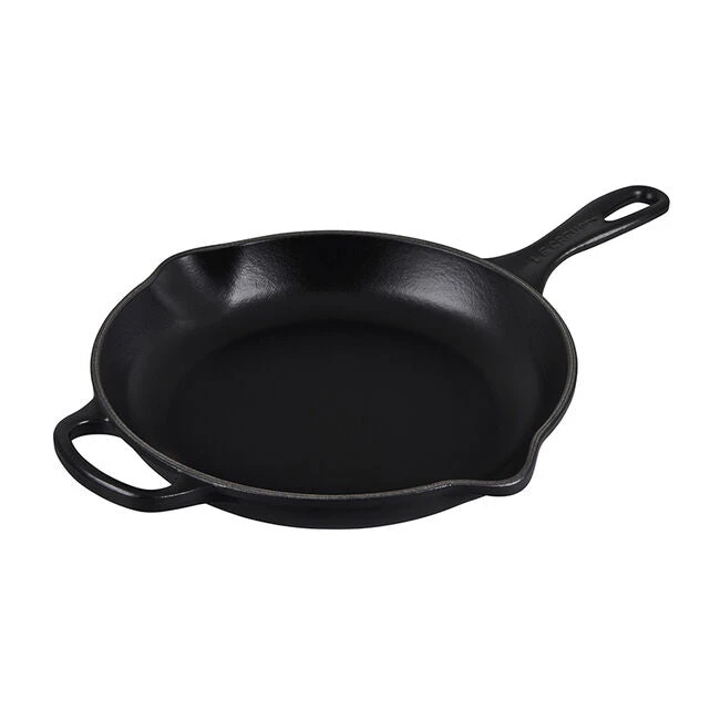 Cast iron skillets have long been treasured kitchen staples for stovetop frying and oven baking. Over time, the matte black interior enamel develops a natural patina that is ideal for searing and frying. Pour spouts on two sides allow for drip-free pouring.