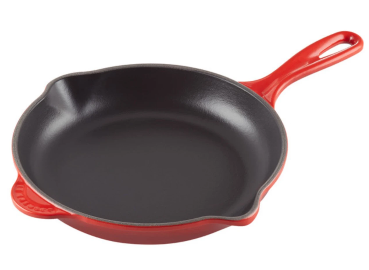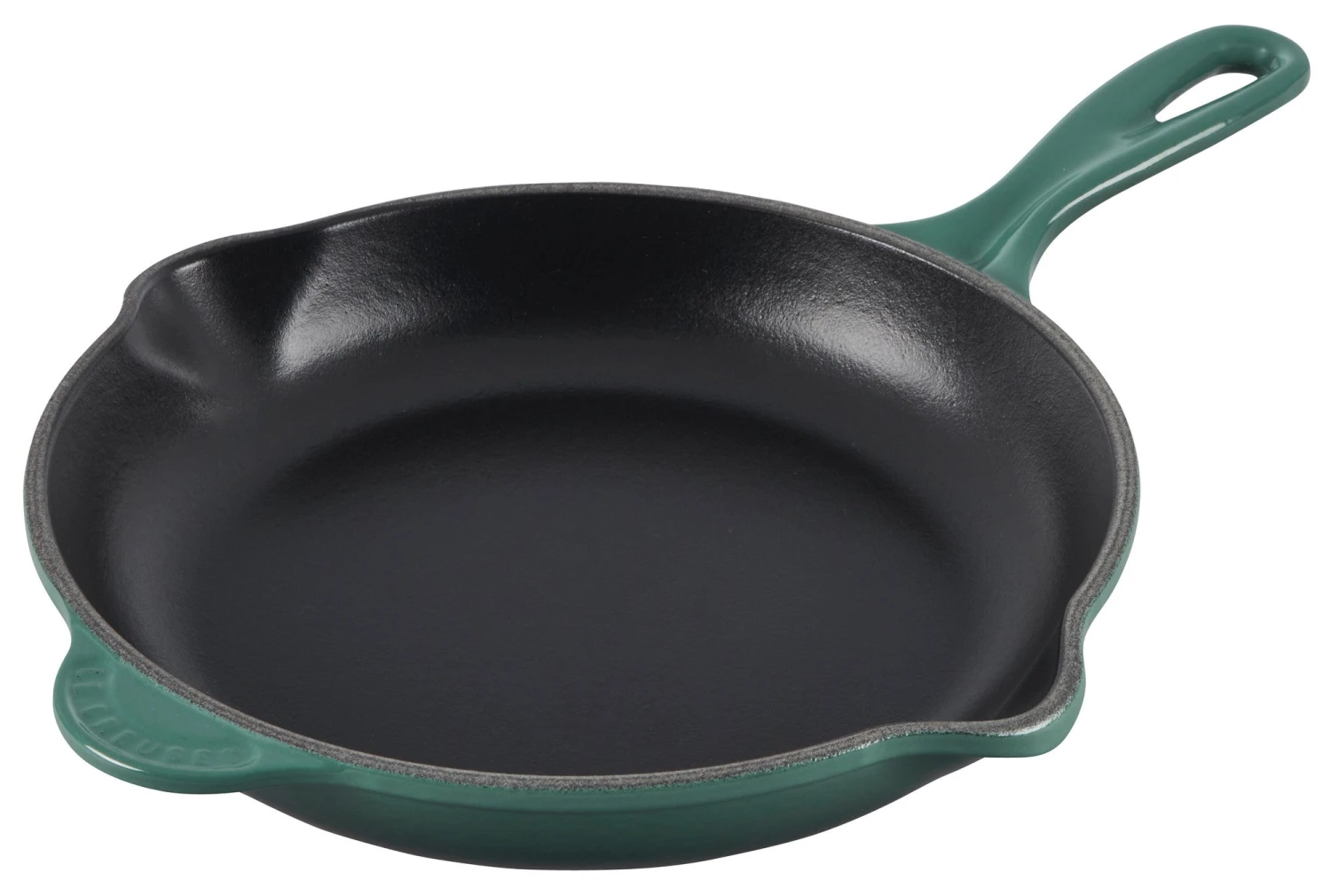 This skillet is the ideal size for making eggs, steak, chicken or fish for two people. Helper handle adds comfort and control when lifting. Compact size is ideal for individual servings or frying eggs. Durable black enamel finish requires no seasoning. Even heat distribution and superior heat retention. Colorful, long-lasting exterior enamel resists chipping and cracking.
