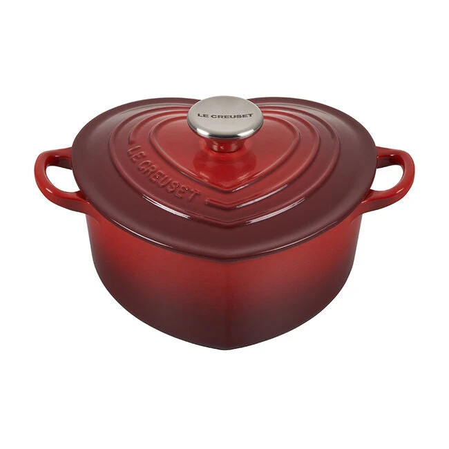 The Heart Cocotte features a newly designed classic heart shape with a sweet stainless steel knob. It’s the perfect size for sharing casseroles, desserts and breads with your sweetheart. Featuring the same exceptional heat distribution and retention qualities to lock in flavor, the cocotte has large loop handles designed for easy lifting from oven to table. The colorful enameled surface minimizes sticking and staining, requires no pre-seasoning, and is easy to clean.