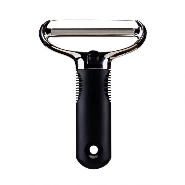 The stainless steel wire on the Wire Cheese Slicer is easy to load and tightens into place with the convenient tensioning wheel. The sturdy, die-cast zinc construction and soft, comfortable handle make it a workhorse at parties. Includes two replacement wires.