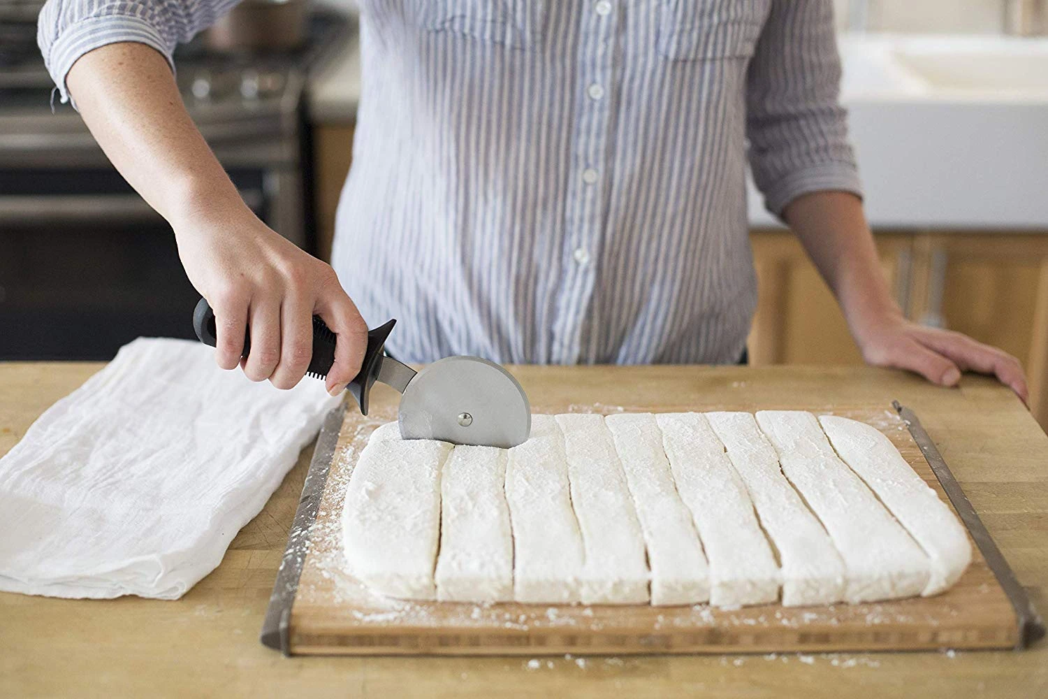 The Pizza Wheel’s stainless steel blade glides through crusts, while the thumb guard keeps fingers away from the blade for added safety. A soft handle absorbs pressure while you slice up your favorite pizza.