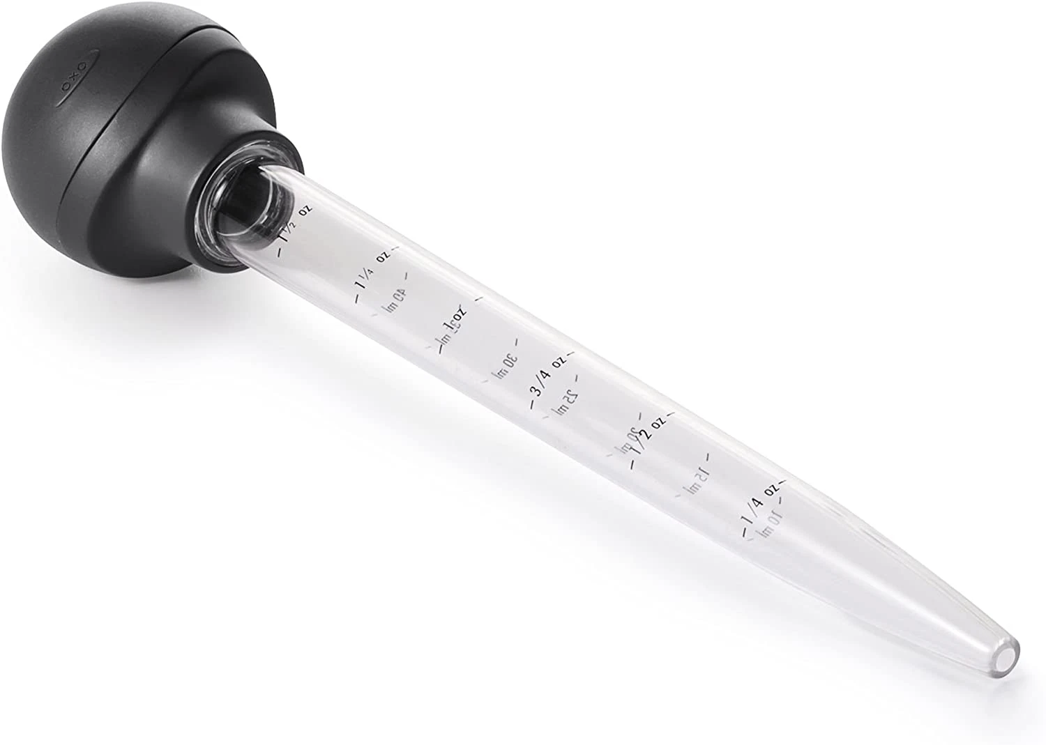Unique bulb shape designed for maximum comfort and control. The bulb and collar make it easy to grip two different ways. No one wants their baster rolling onto the floor, so OXO made the bulb flat to keep it stable on the countertop.