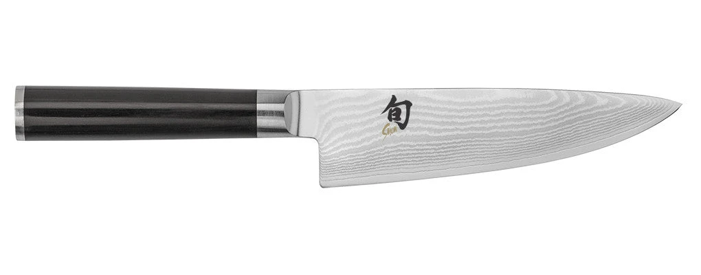 The Shun Classic 6-inch Chef’s knife is an all-purpose blade ideal for slicing, dicing, and chopping small to medium-sized fruits, vegetables, and other foods. The wide blade keeps knuckles off the cutting board and is extra handy when transferring cut food from board to pan. With its curved belly, the Chef’s knife can be gently “rocked” through fresh herbs or spices to produce a very fine mince.