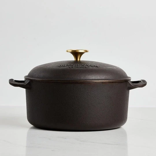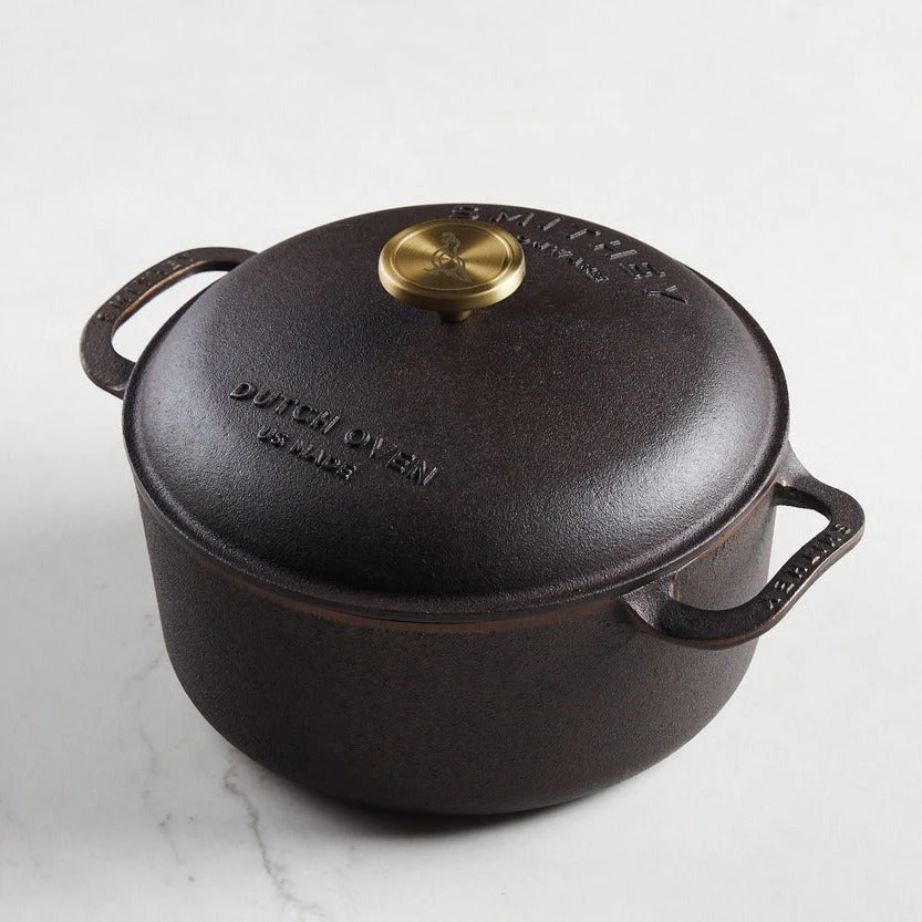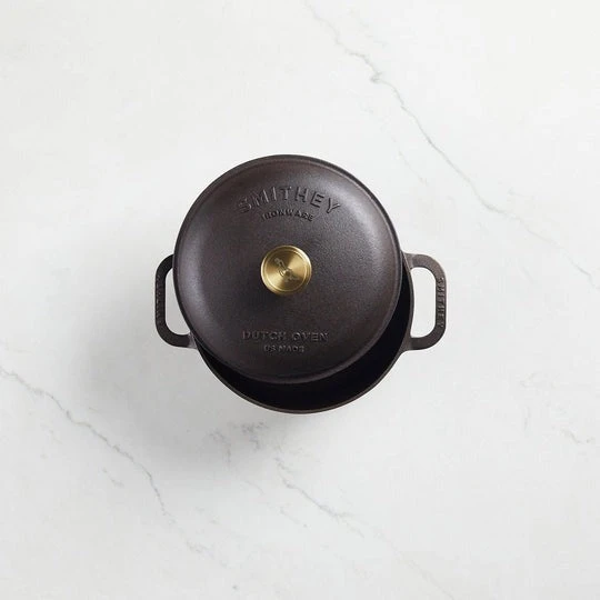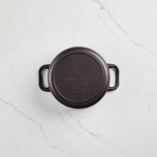 Honoring the best of vintage American Dutch oven design, the 5.5 QT Dutch Oven is a beautiful and functional kitchen work horse that is destined to be a modern heirloom. Featuring Smithey’s signature polished interior surface that is naturally non-stick and easy-to-clean, this Dutch oven combines the best of enameled cast iron heat performance with a surface finish that will never crack or chip – in fact, the interior surface will only get better with use. Engineered to maintain even and consistent heat, this Dutch oven is perfect for everything from slow-cooking to frying, roasting to baking. Made in the U.S.A., the Smithey Dutch oven is for those who wish to stand out from the pack – use it well.