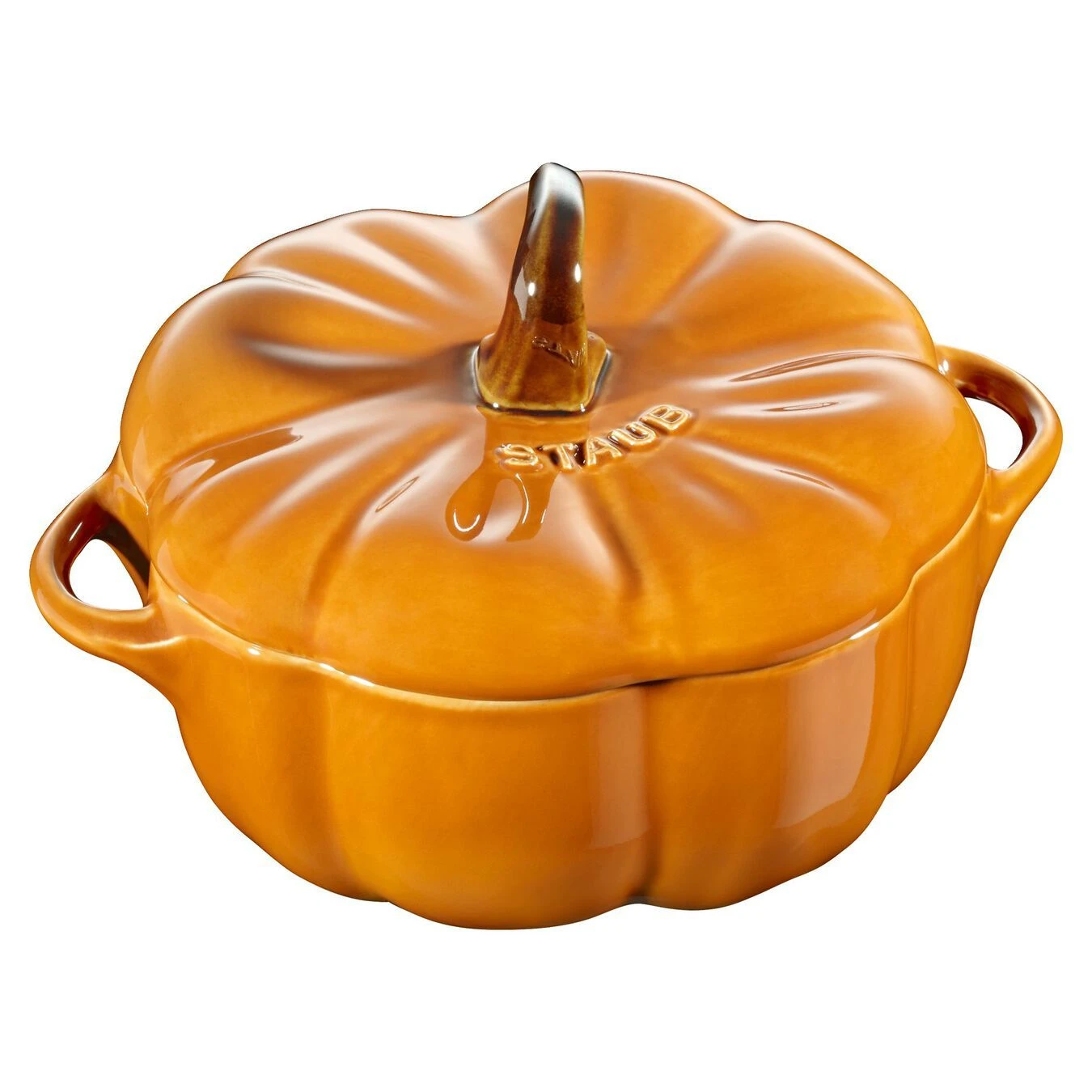 The Staub Ceramic Pumpkin is a stylish addition to your table. Show off your soups, casseroles, and vegetables – each dish is elevated when presented against this this pretty pumpkin. The piece effortlessly and elegantly transitions from the oven to the table without the need for multiple dishes. Staub ceramics offer unparalleled performance, durability and design. The pieces are fired twice at a very high temperature, making them very resistant to impact and thermal shock; as a result, they go from freezer to oven to table with ease. The porcelain enamel glaze prevents absorption of moisture during baking.